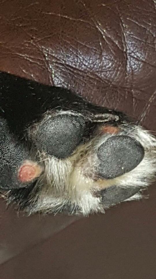 Sore feet and raw paw pads are very common from the amount of travelling the lost dog may be doing. Asphalt roadways and twigs and sticks on paths are especially hard on a dog’s feet. Often the sightings of these dogs will report the dog as limping and the owner might panic thinking their dog has been hit by a car. But raw paws heal pretty quickly and have no lasting damage.